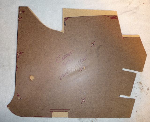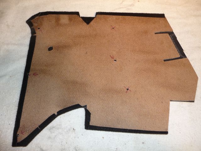 panel outline on the back of the carpet and spray