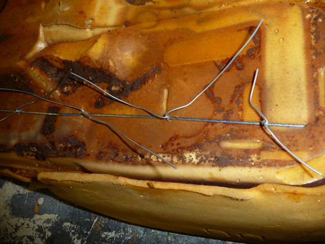wire tie around the seat pan and through the