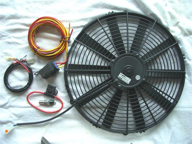 16" Fan, custom fan mounts and fan wire harness with temperature sensor. Then
